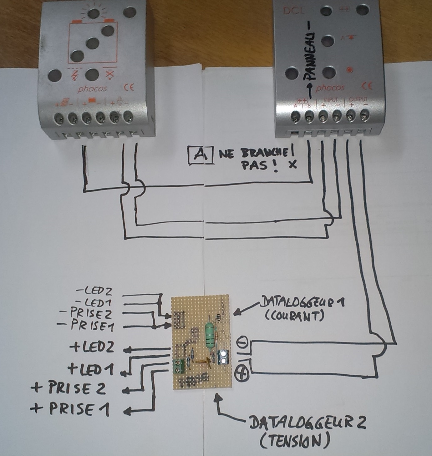 | école Foulla | Kemo 148A | 13,3 V (Anschlag rechts) | Logger falschrum angeschlossen –> nichts gemessen |